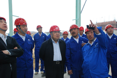 On February 2, Mr. Cheng Bingqiang (Board Chairman and Party Secretary of China MCC5 Group) visited the site of Zhanjiang Steel Projects constructed by MCC5. At that moment, Zhanjiang Steel Projects were in the peak construction stage. Mr. Xu Yongfeng (Board Director and Vice General Manager of China MCC5 Group, General Manager of MCC5 Group Shanghai Corp. Ltd.) and Mr. Wang Chongyun (Vice General Manager of MCC5 Group Shanghai Corp. Ltd.) accompanied Mr. Cheng Bingqiang to visit the projects site.