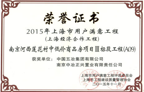 In recent days, Nanjing Lotus Village Residential Buildings Project (Package Ⅲ A09 Building) constructed by China MCC5 was awarded “2015 Shanghai Customer-Satisfactory Project”.