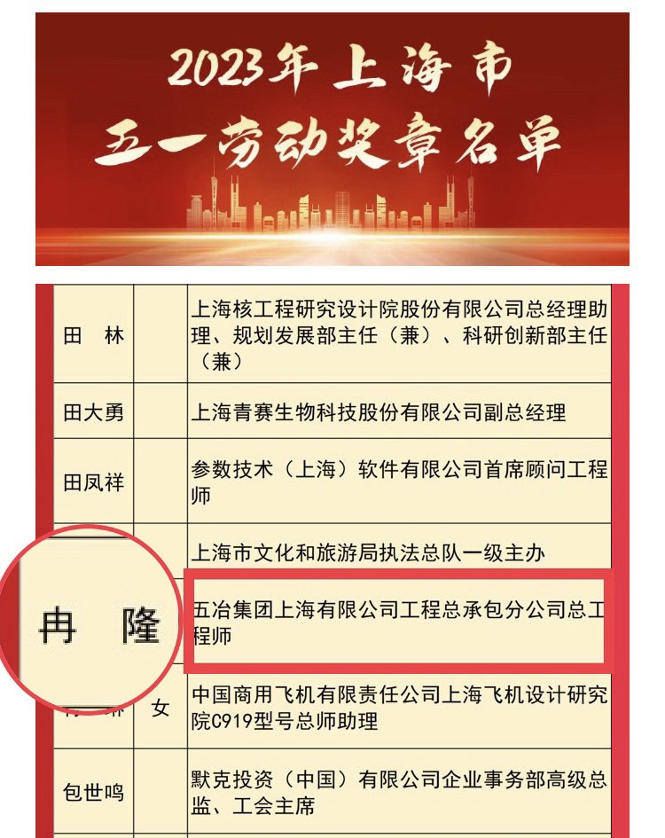 4月27日,2023年上海市五一劳动奖表彰大会在上海友谊会堂隆重举行,悟空手机平台工程总承包分公司总工程师冉隆同志荣获上海市五一劳动奖章。