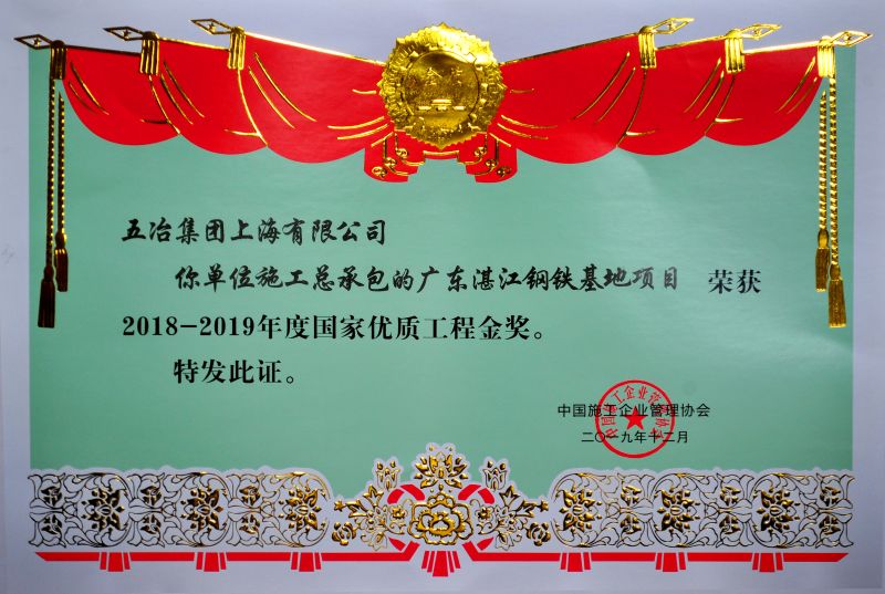 广东湛江钢铁基地项目(施工总承包)2018-2019年度国家优质工程金奖