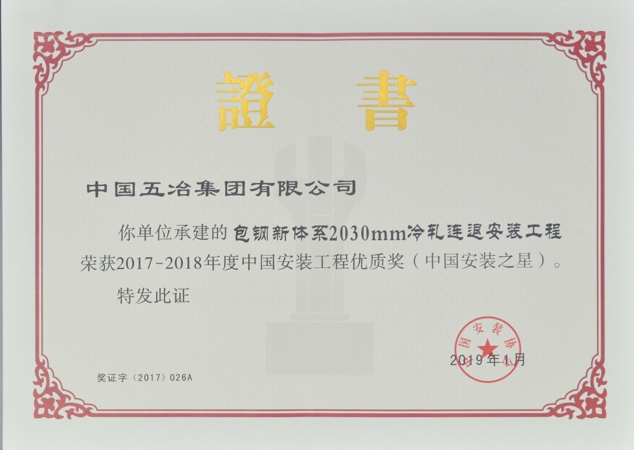 包钢新体系2030mm冷轧连退工程2017-2018年(中国安装之星)