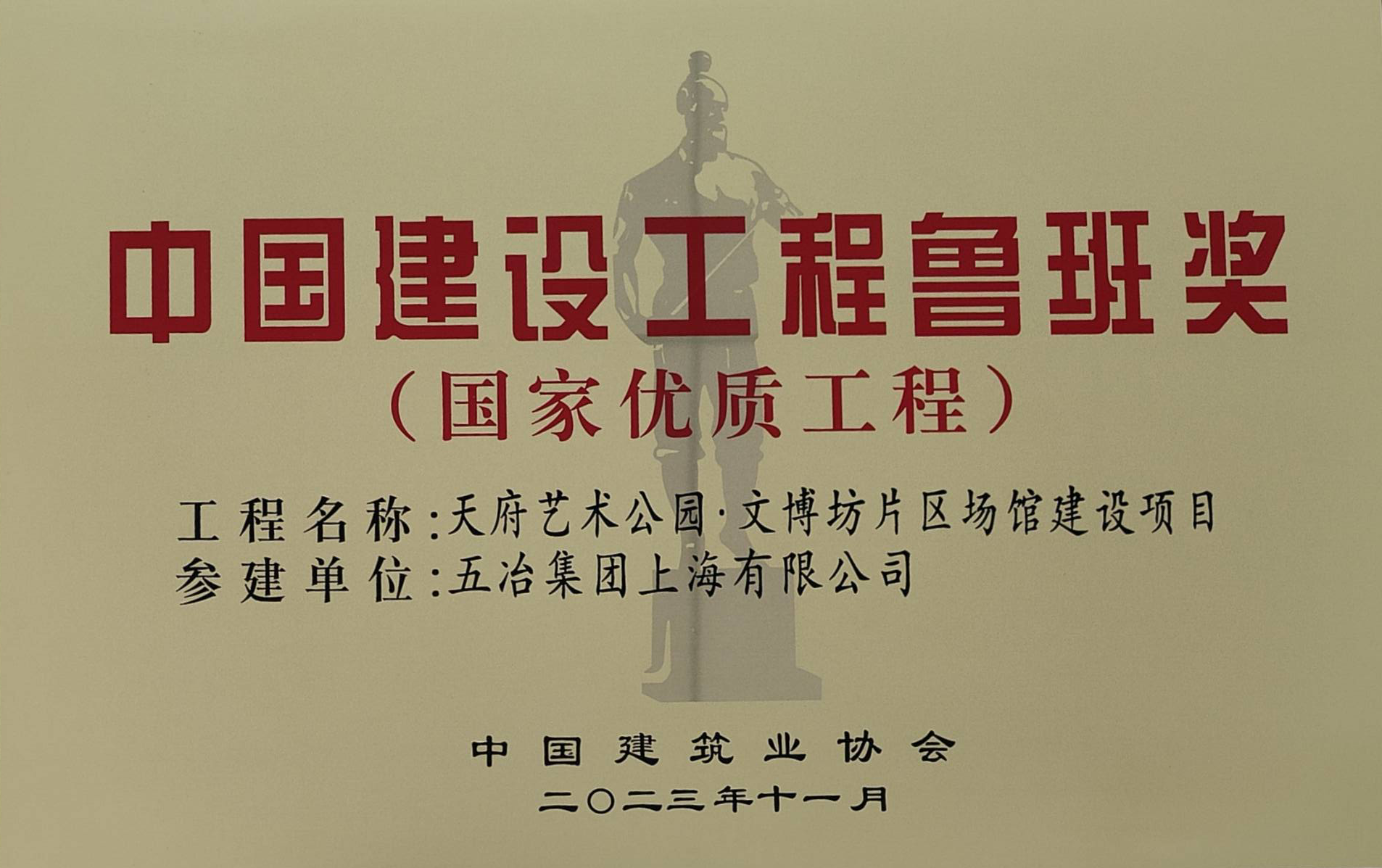 天府艺术公园·文博坊片区场馆建设项目工程荣获2022~2023年度中国建设工程鲁班奖(国家优质工程)