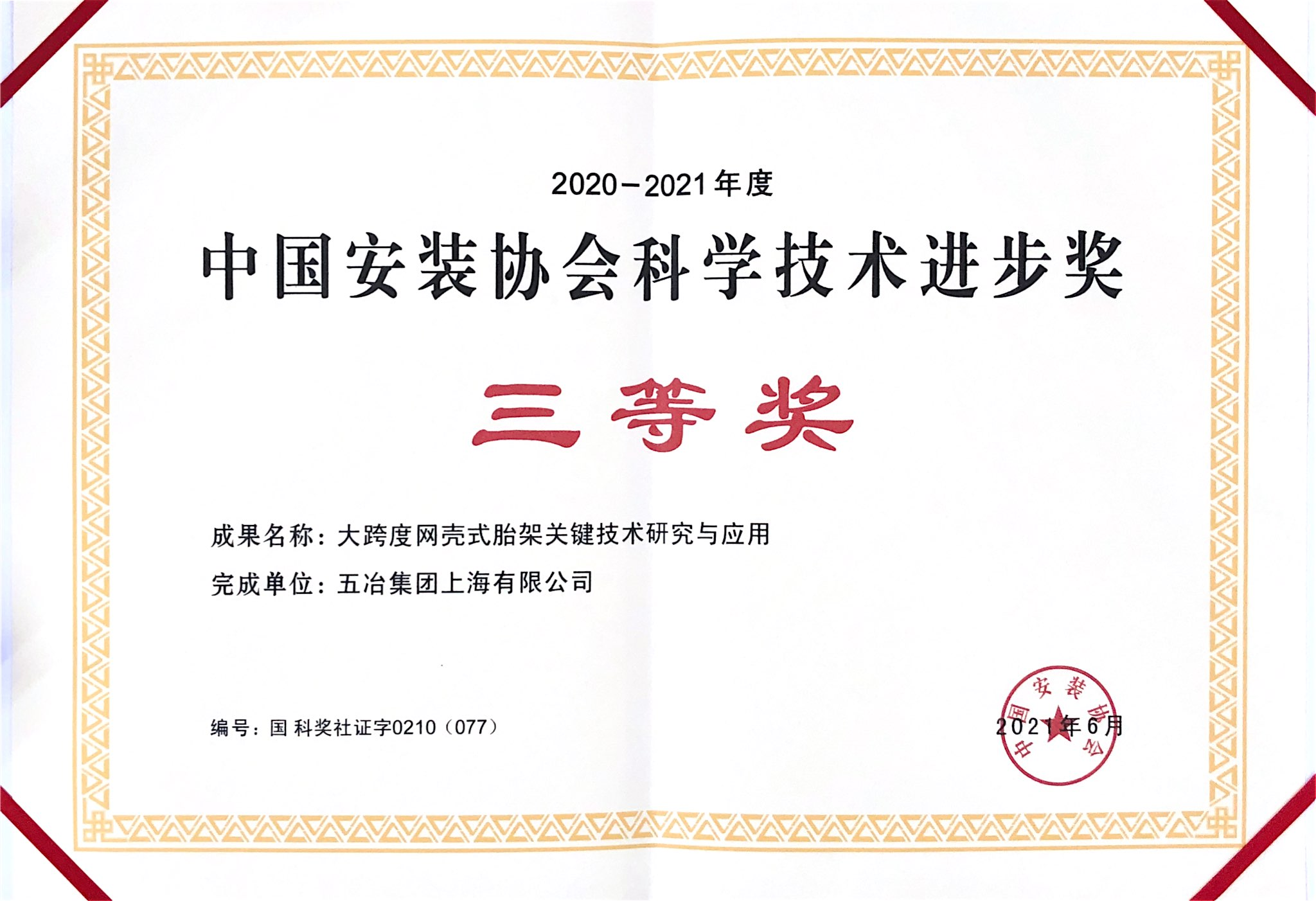 2021年中安协科技进步奖三等奖-大跨度网壳式胎架关...