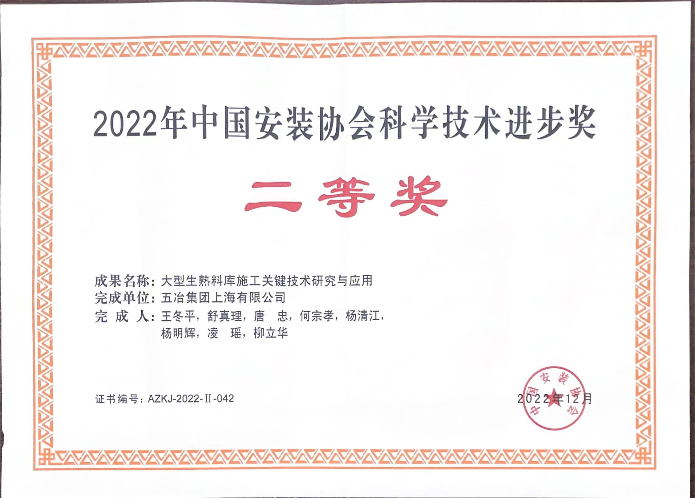 2022年中国安装协会科学技术进步二等奖-大型生熟料库施工关键技术研究与应用