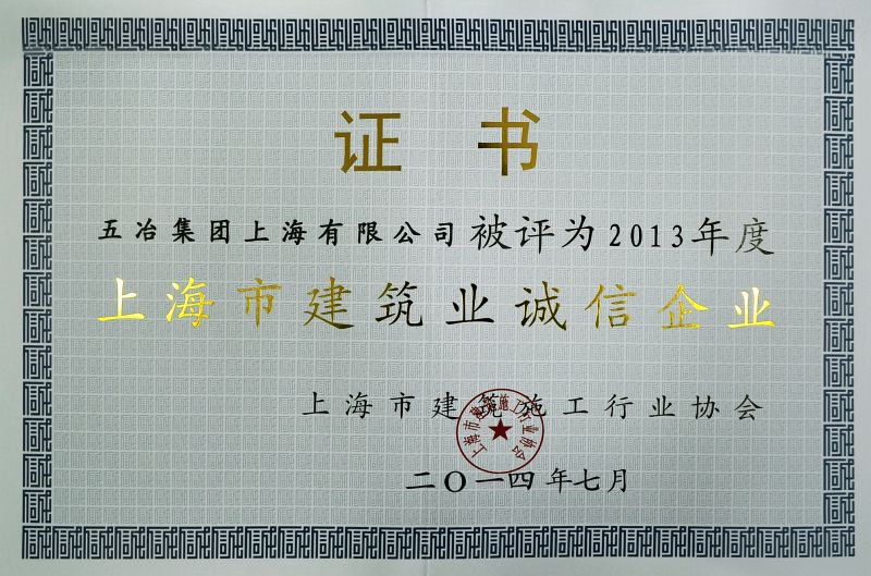 2013年度上海市建筑业诚信企业
