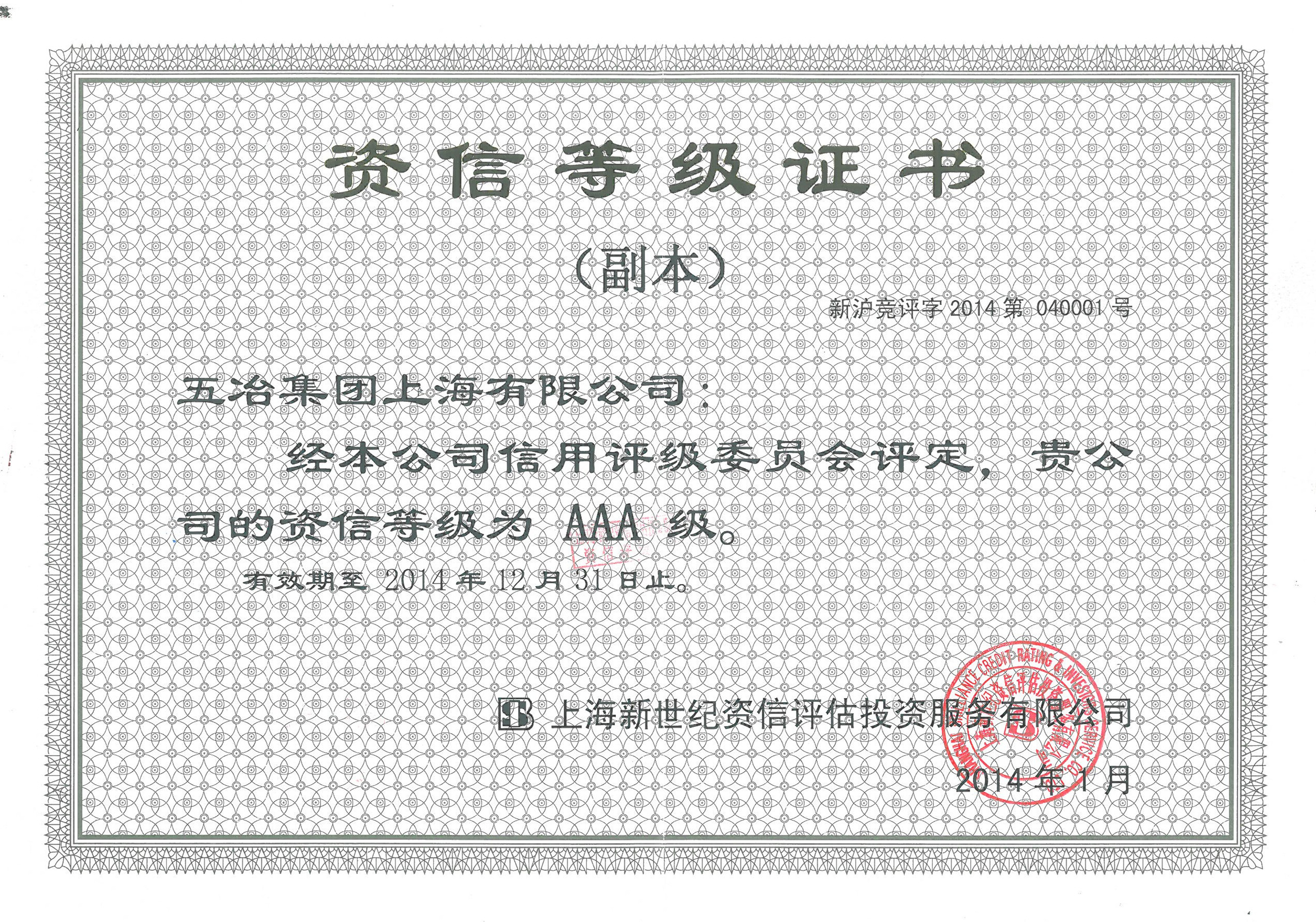 2014年度3A资信等级