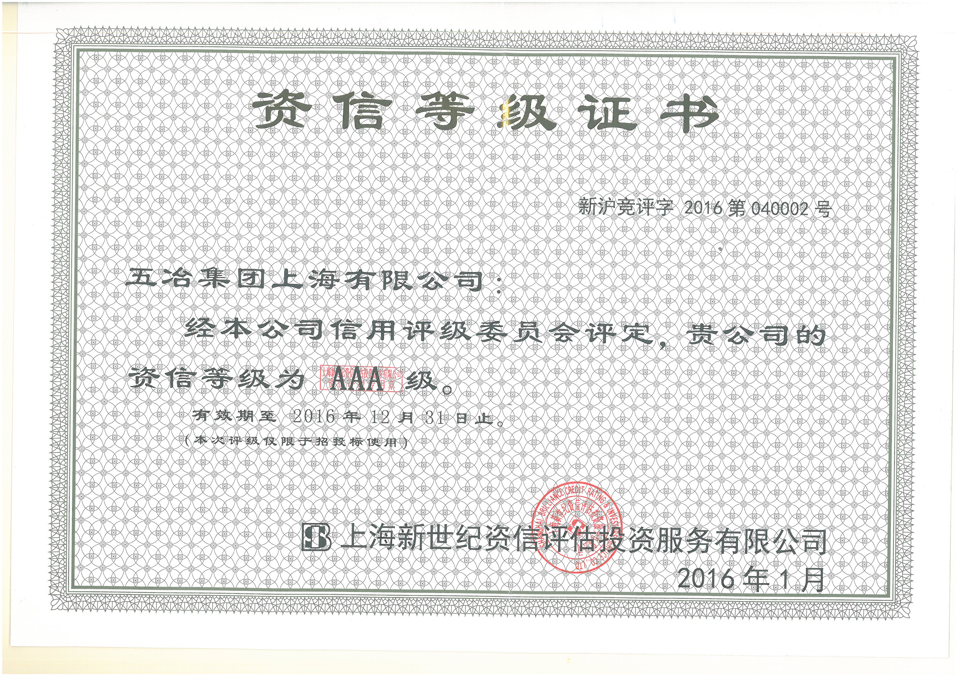 2016年度3A资信等级