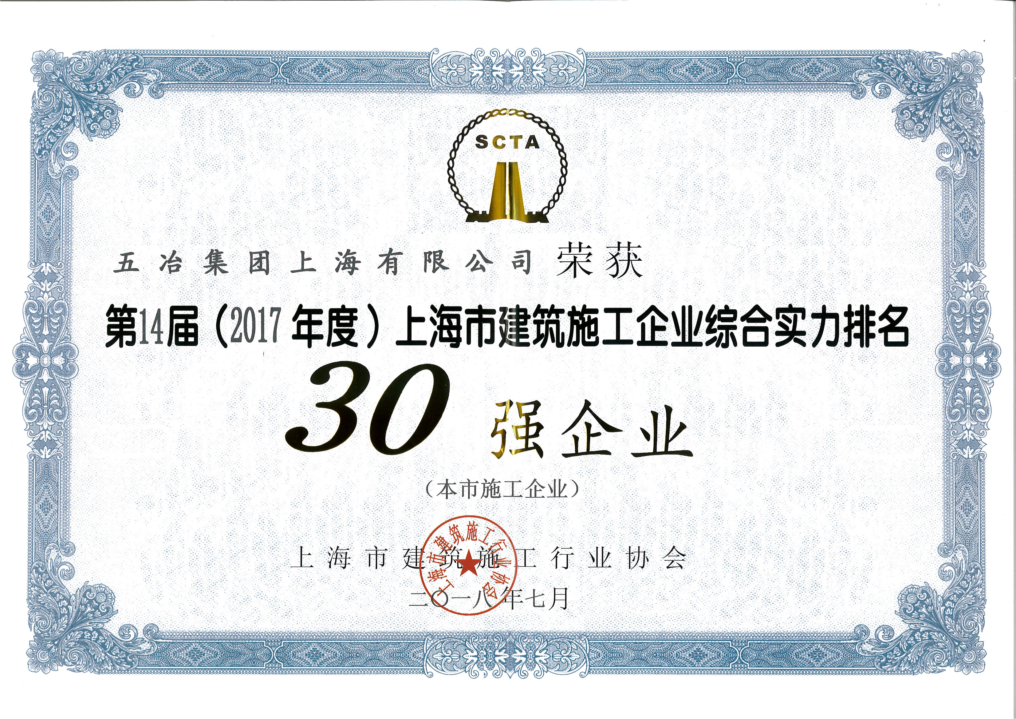 2017年度上海市建筑施工企业30强