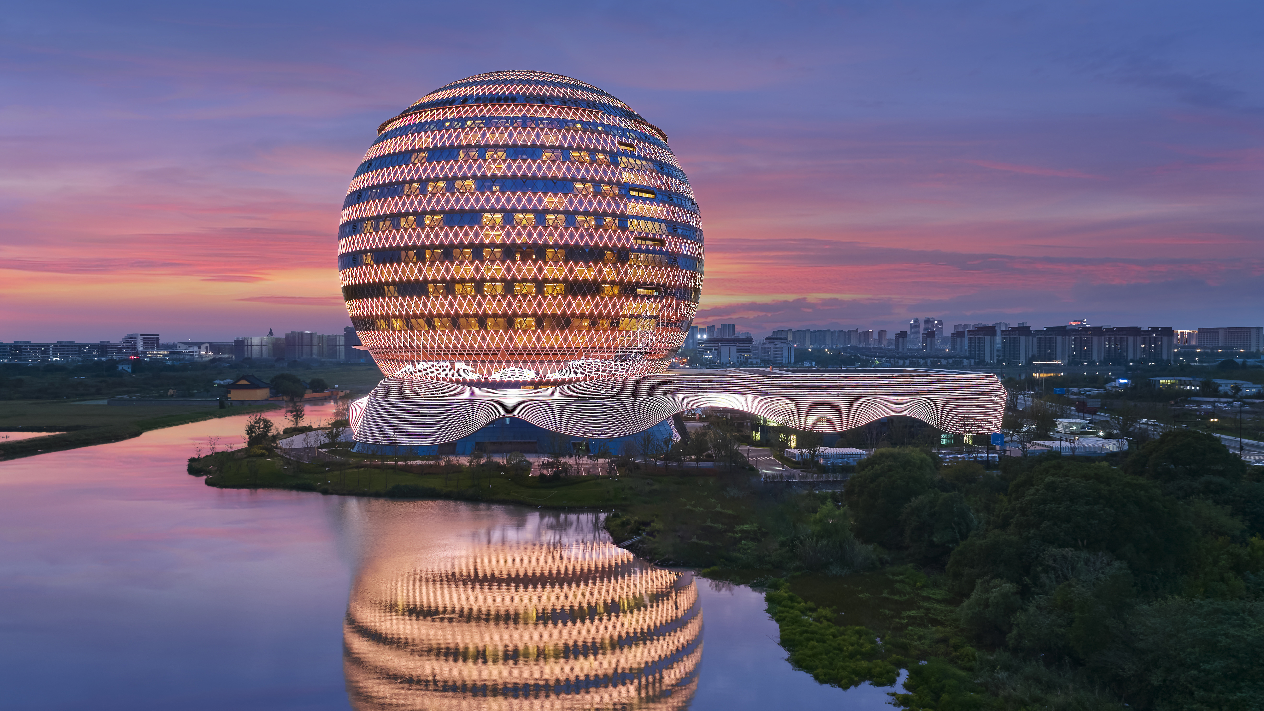 湖州太阳酒店项目是一座集住宿、餐饮、娱乐、旅游等多功能于一体的综合性五星级酒店,是世界最大的钢结构球体建筑。在建设之初,项目团队采用BIM技术模拟太阳酒店建设,事先对每一处钢构件的形状、重量、倾角等都进行了严密测算,确保每一件钢构件都能做到“百分百”合格。在倾斜钢柱安装的定位施工中,项目团队通过钢结构健康监测技术,实时调整钢结构安装精度,保障定位准确。在菱形弯曲箱体梁加工过程中,菱形弯曲箱体梁造型复杂,截面在模型中创建难度大,曲度难以控制,项目团队就通过设计图定位每个构件菱形角度与弯曲方向,制作1:1加工样箱,采用三维激光扫描仪检查构件尺寸,保证构件加工质量。该项目凭借着过硬的质量相继获得中国钢结构金奖、浙江省钢结构金刚奖、四川省安装工程优质奖“蜀安杯”等多项重量级荣誉。